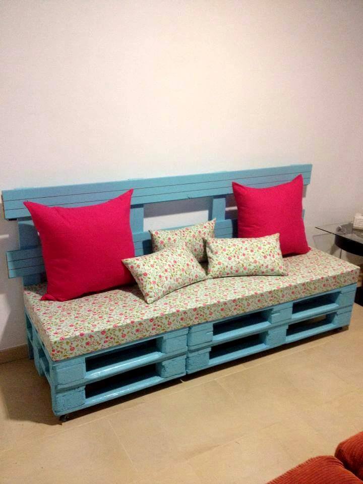 Sofá de pallets con ruedas para moverlos a tu gusto.